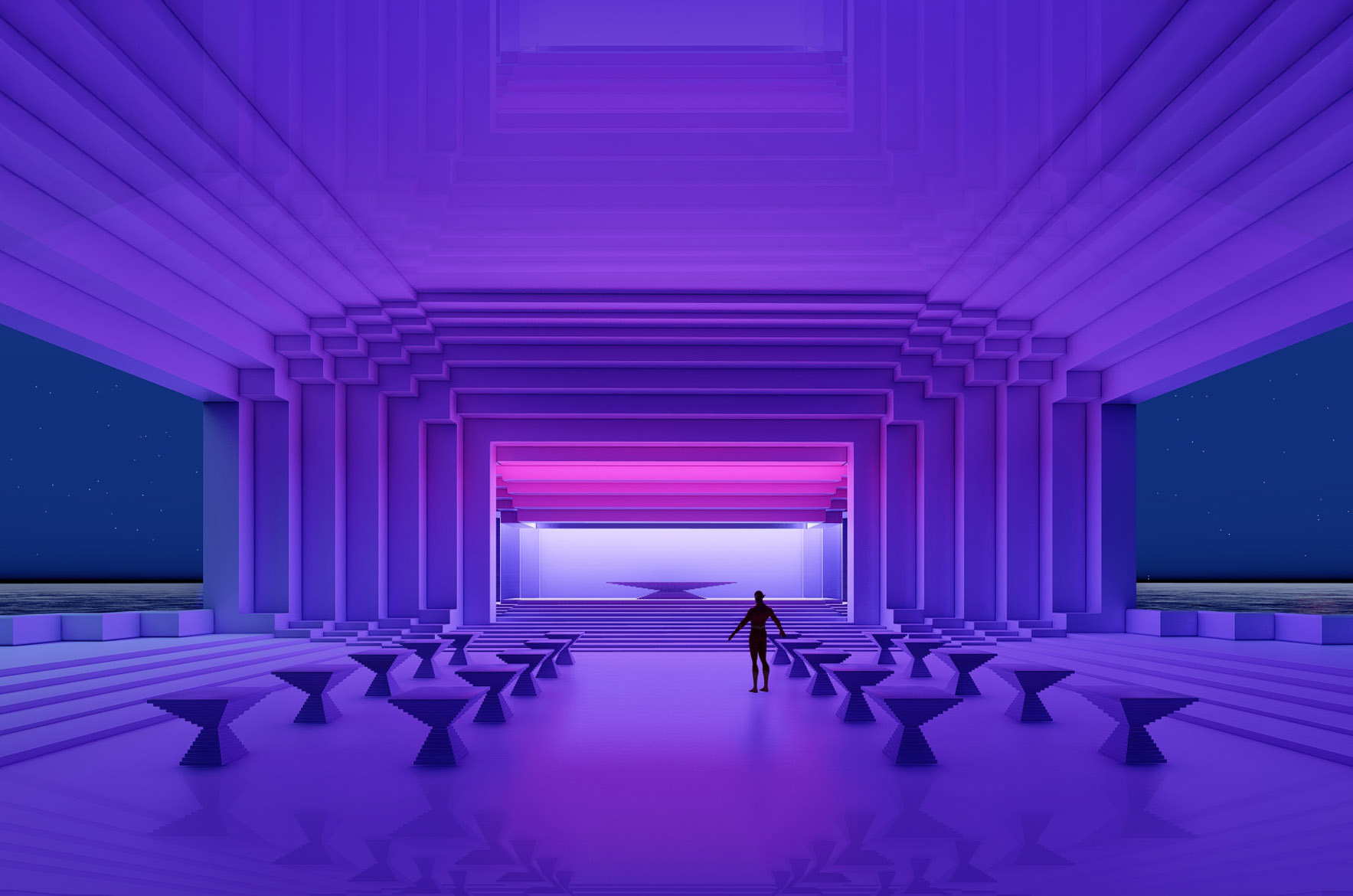 The brief called for spaces translating the language of the Blade Runner film world. Extended design research established a language of retro-futuristic architecture while maintaining the timelessness, rich materiality, and transcendent quality of our studio's work.