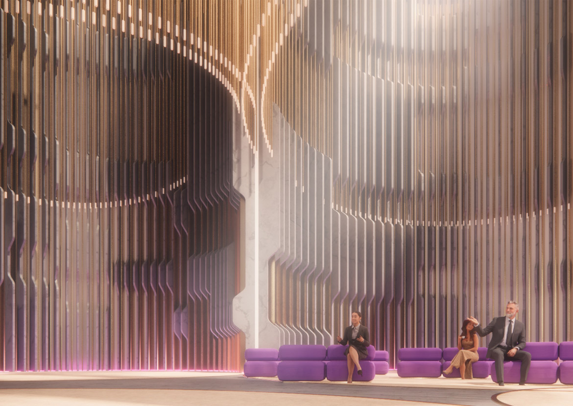 We developed a softer design language to create more habitable environments - boardrooms, lobbies, and event spaces. While the scale remains dramatic, a finer grain of detailing and the introduction of softer surfaces is more appropriate.